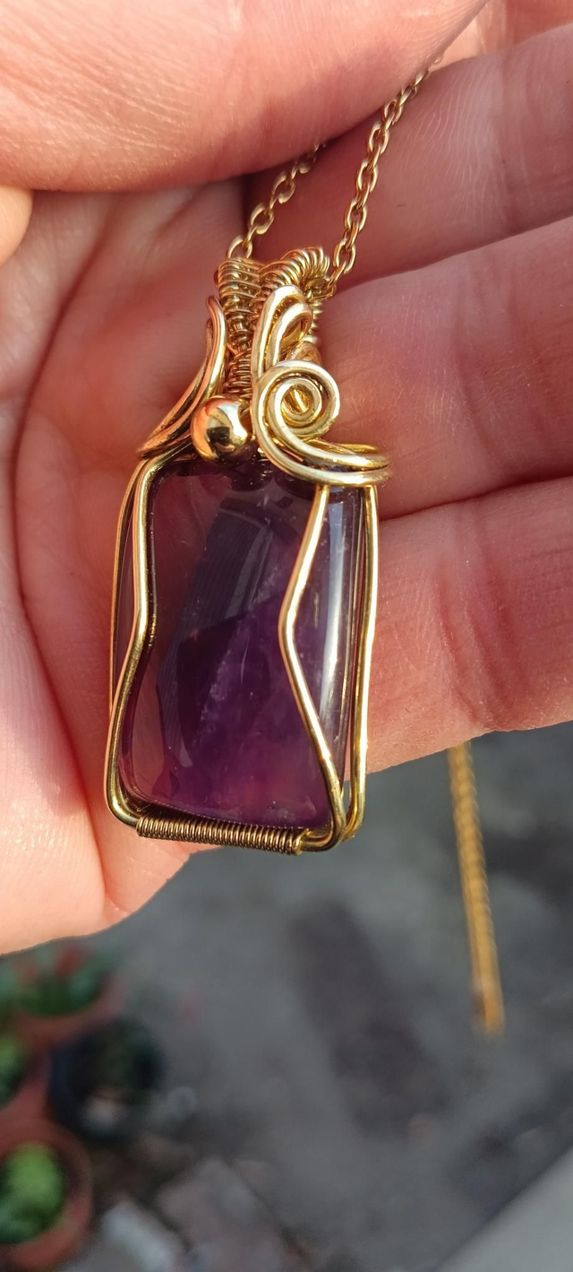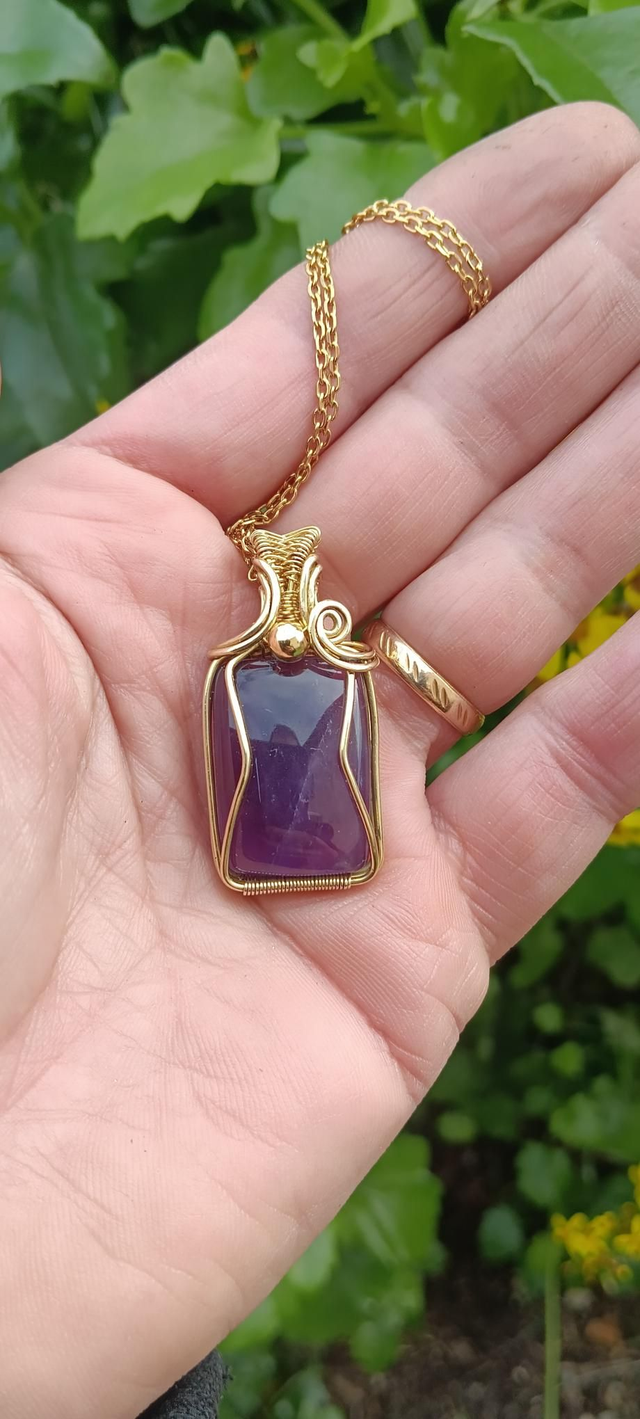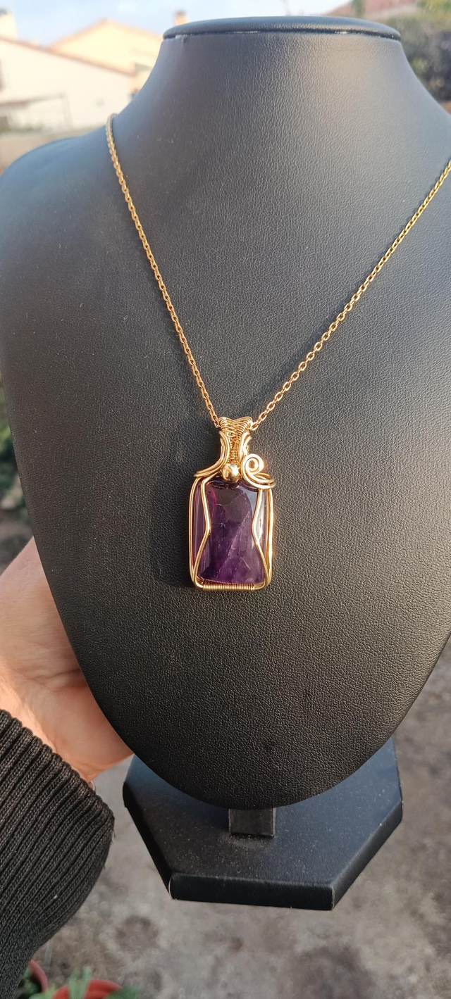 Pendentif en laiton doré et amathyste