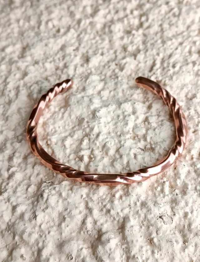 Ce bracelet en cuivre vrillé, façonné entièrement à la main dans mon atelier, allie authenticité et caractère.